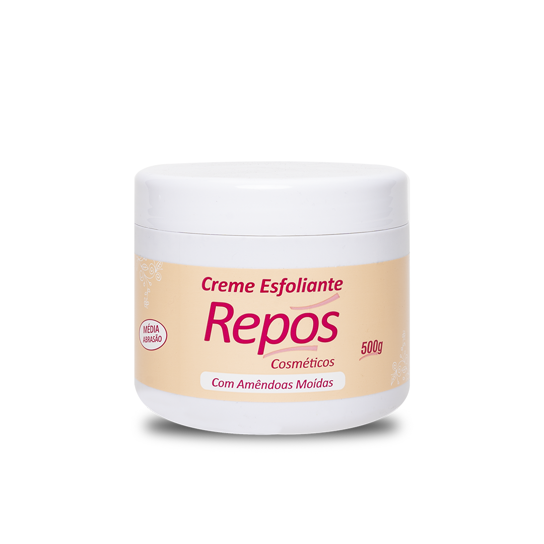 O creme esfoliante da Repós contém em sua formulação amêndoas moídas que além de esfoliar a pele, regenera e da macies.